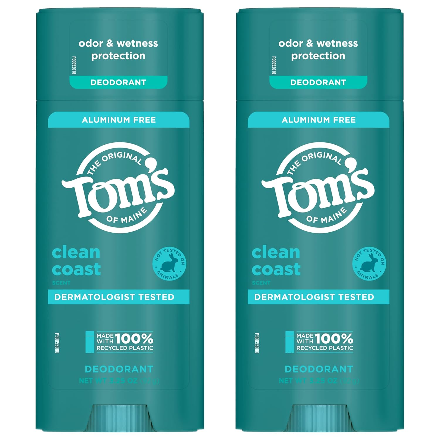 Tom’s of Maine Clean Coast Aluminum Free Natural Deodorant For Women & Men | Goes on Clear | Odor & Wetness Protection | Naturally Derived and Moisture-Locking Ingredients | 3.25 oz (2 Pack)